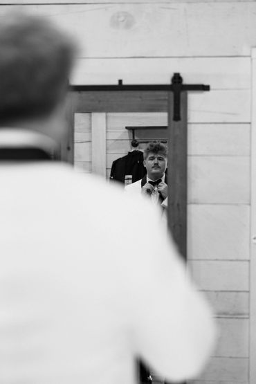 The White Dove Barn, an exquisite all white wedding venue, features a thoughtfully designed groom’s suite, perfect for those special “getting ready” moments. This space showcases a comfortable and stylish layout with two TVs, leather couches, a poker table, and outdoor access.